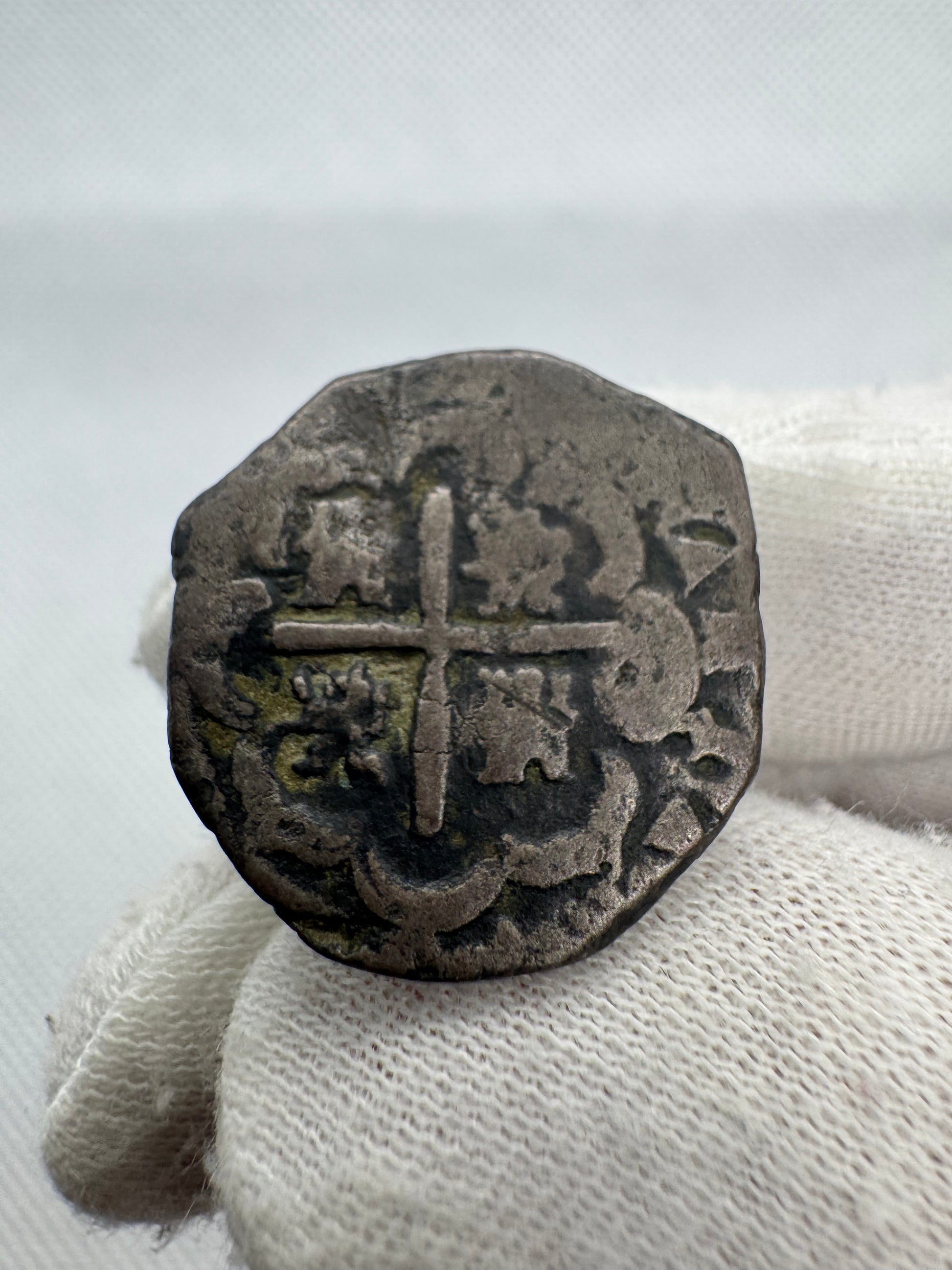 Marca de ceca, ensayador y valor perfectamente visibles. El ensayador V solo estuvo en la ceca de Sevilla desde 1612 hasta 1616, por lo que datamos la moneda en esas fechas, pieza de bajo peso por un recorte.