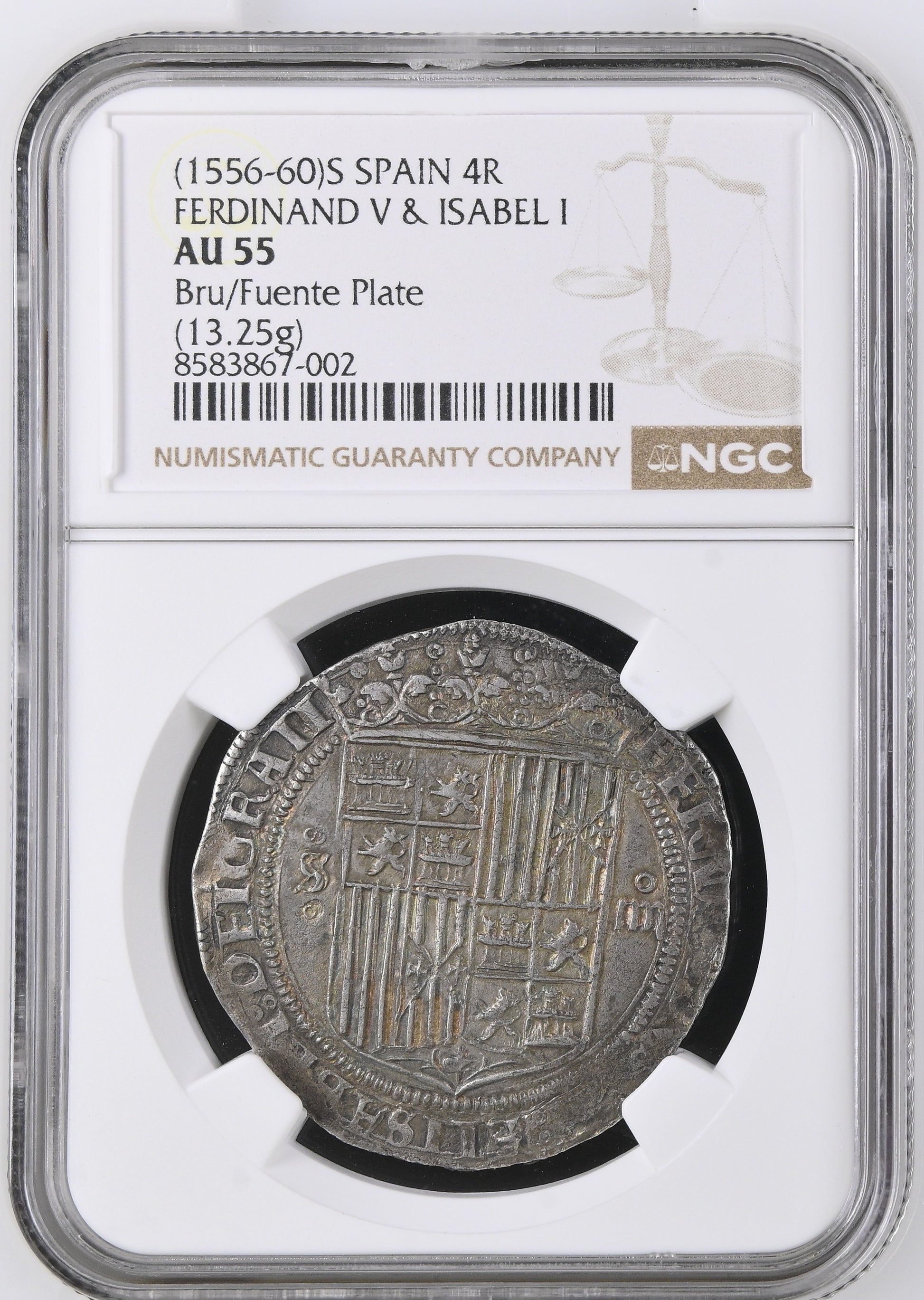 [NGC TOP POP] Reyes Católicos (1474-1504). 4 reales. (1556-1560). Sevilla. Estrella. (Cal-561). Ag. 13,25g. NGC AU55.